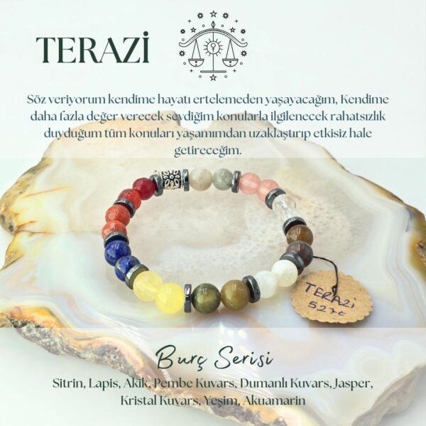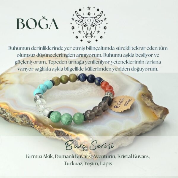 Bağımsız, yenilikçi ve yaratıcı ruhuyla öne çıkan Kova burcuna özel olarak tasarlanan bu bileklik, Lapis, Turkuaz, Garnet (Lal), Aventurin, Akuamarin, Dumanlı Kuvars, Kristal Kuvars, Ametist, Hematit, Yeşim, Akik taşlarının enerjisiyle zihinsel açıklık, özgürlük ve sezgisel güç sunar.